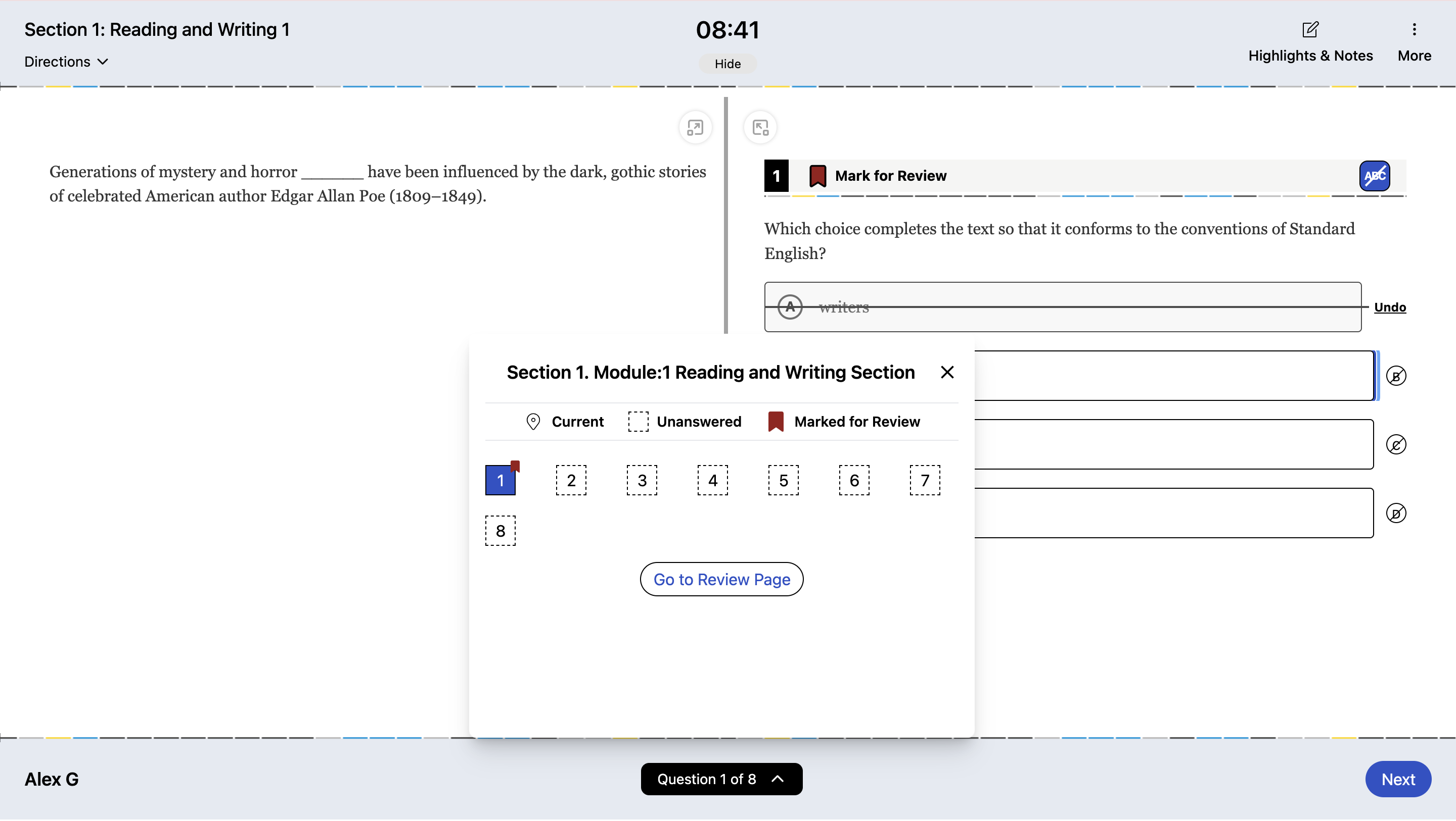 We use proprietary testing software designed to mimic the actual digitalSAT